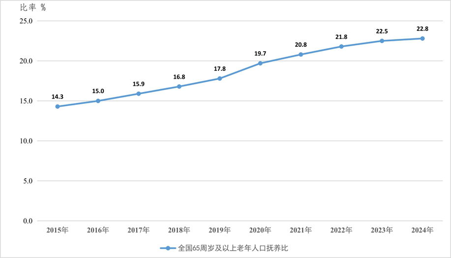 ▲图3 2015—2024年全国65周岁及以上老年人口抚养比图1—3数据来源:国家统计局