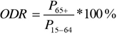 2. 老年人口抚养比是指某一人口中老年人口数与劳动年龄人口数之比,用以表明每100名劳动年龄人口要负担多少名老年人。计算公式为: